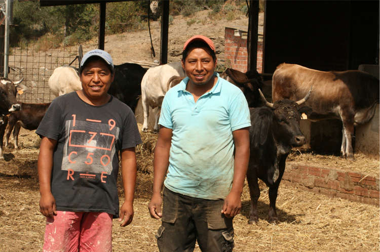 Dos hermanos bolivianos con la vaca de La Albera. El mayor, Luis aprendió el oficio de vaquero en estas montañas; hoy, con ayuda de sus perros, es el pastor de la Albera. Corre como una gacela, es fuerte y muy buena persona. Siempre con un ojo en todo.